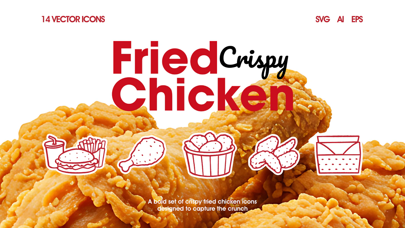 Fried Crispy Chicken Icons — Graphics | Bundl Markets | Bundl Markets
