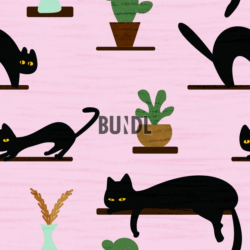 Playful Cats and Plants Pattern — Illustrations | Bundl Markets | Bundl Markets